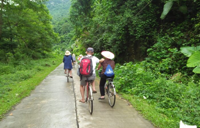 Opt 2: For fitness & young people & the water level in Nui Thung ( spirit eye mountain), you can choose to climb up the mountain, through waterfall, karst mountain & forest.